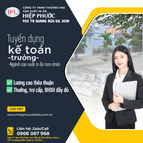 ✅Công ty SX in ấn Hiệp Phước Labels cần tuyển 💸KẾ TOÁN TRƯỞNG